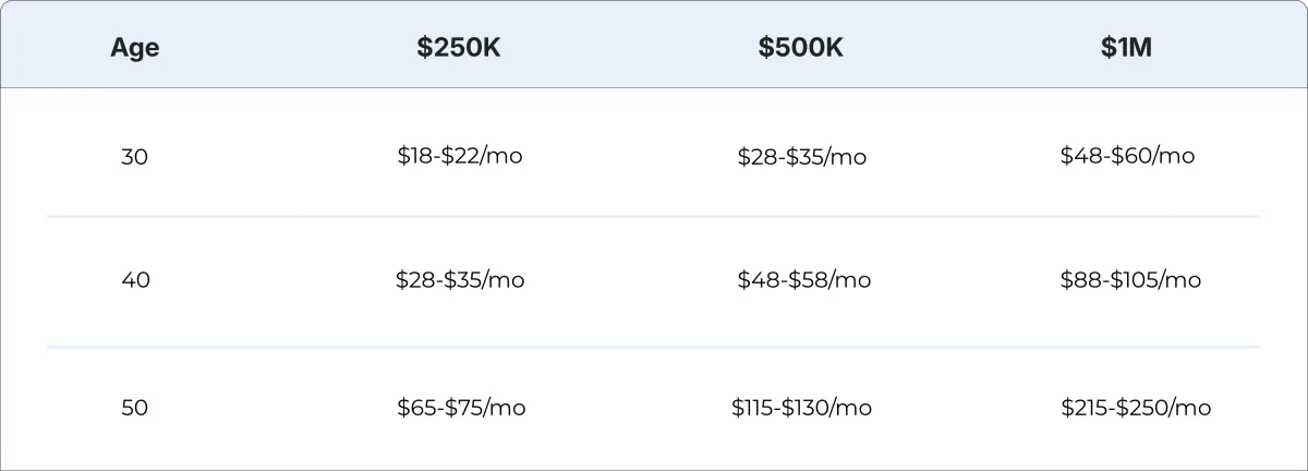 The cost depends on your age, coverage amount, and health.